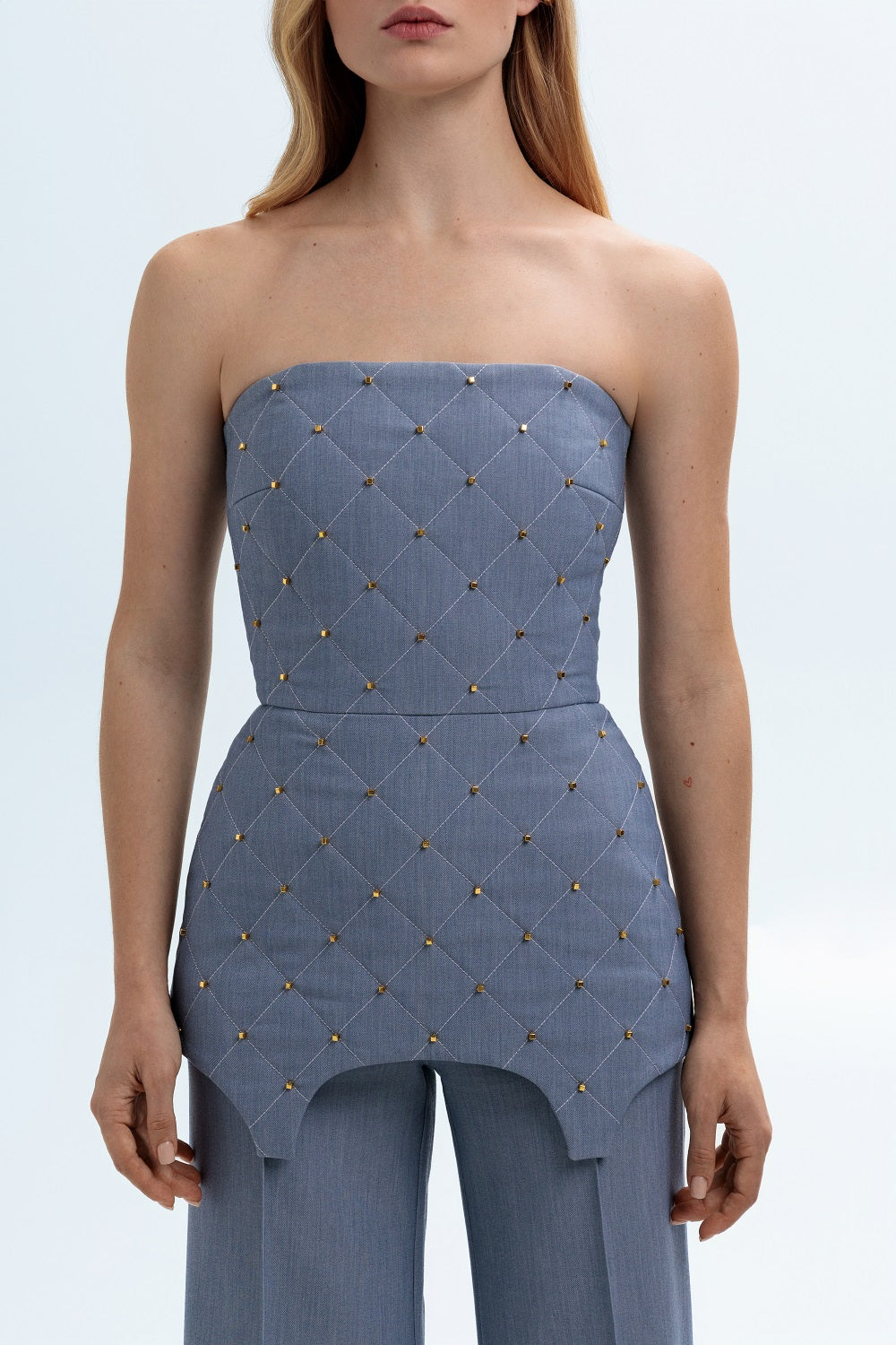 Elevate your wardrobe with this stunning corset featuring intricate decorations. The rich blue hue complements any ensemble, while the decorative details add an elegant touch. Perfect for special occasions or layering with your favorite outfits. Consult our size guide for the ideal fit.