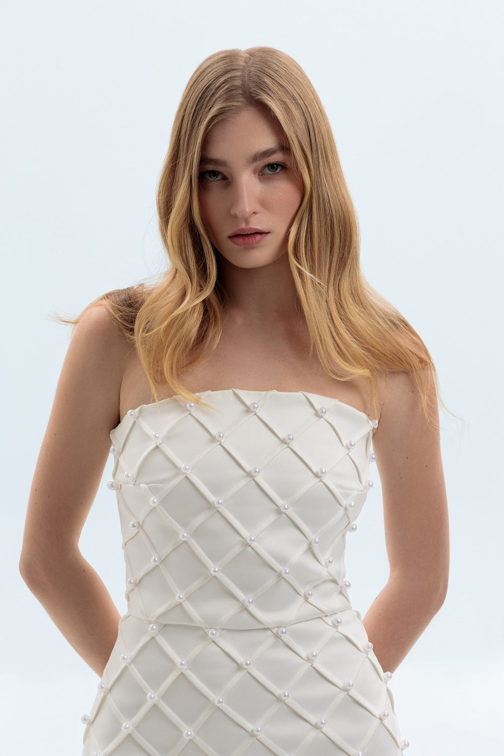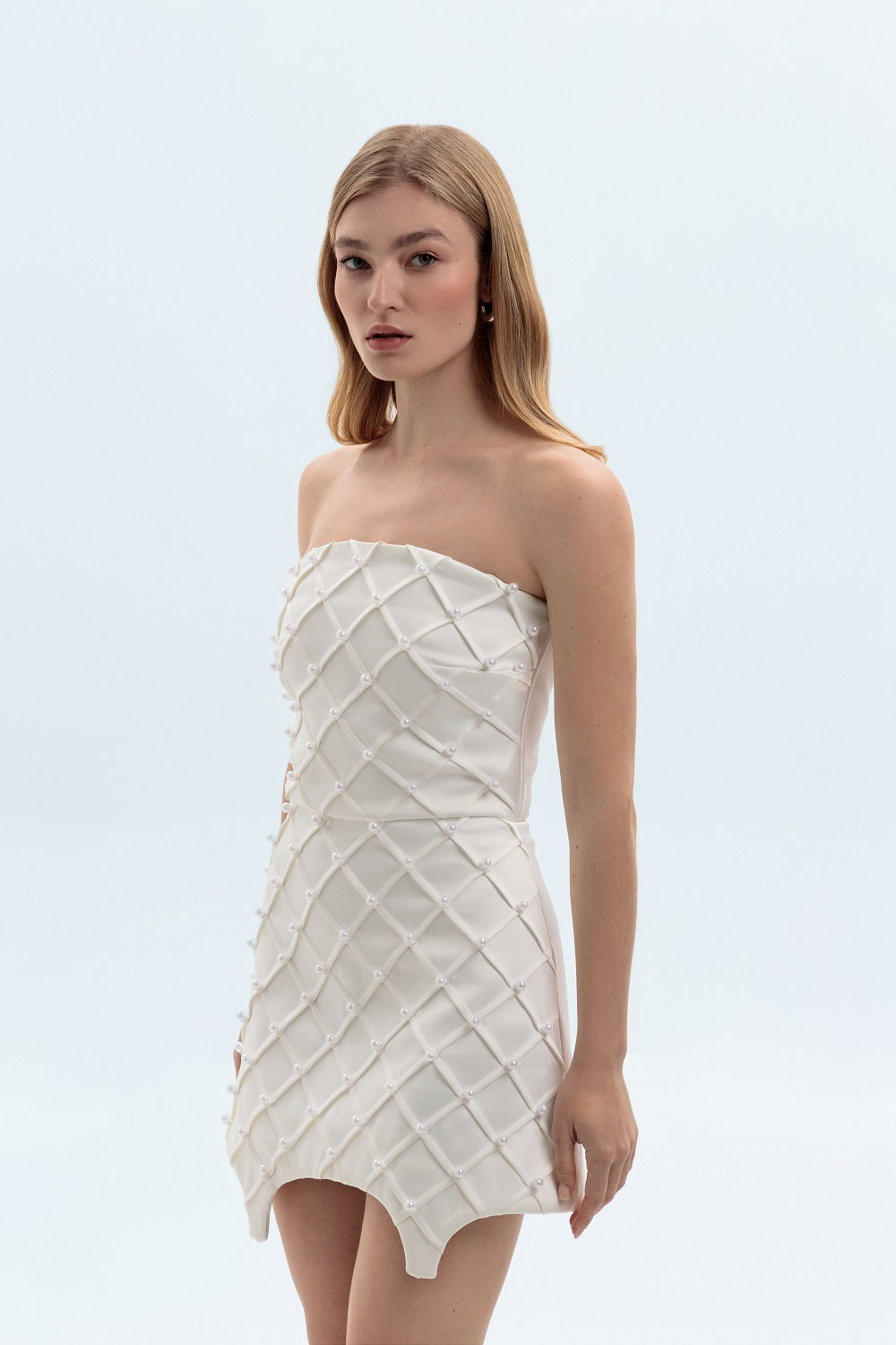 Chic and feminine, this mini dress adorned with pearls adds a touch of luxury to your look.